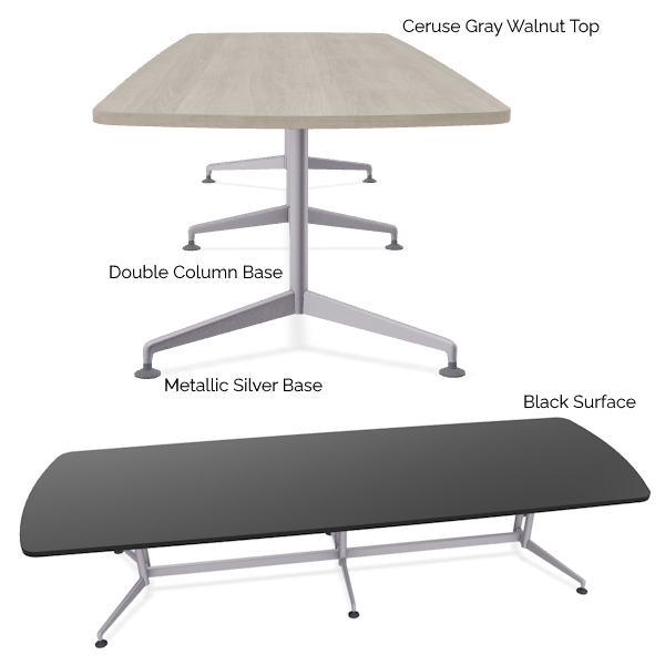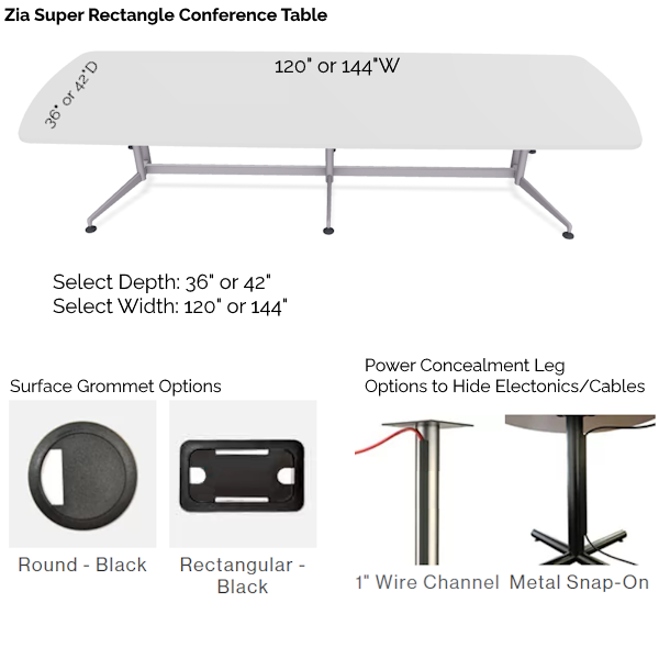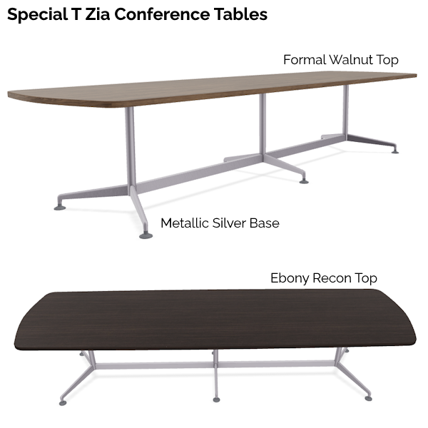 ZIA Super Rectangle Conference Table from Special-T is the epitome of sophistication and practicality. With its slim and sleek base design, the 10′ Zia conference table redefines effortless elegance in conference room settings. Dual column open base is finished here in Metallic Silver (other paint colors available – ask us!).