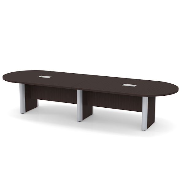 Elliptical leg oval conference table from NDI Furniture offers a silver or black accent panel leg for modern styling. Oval conference table at 12′ x 4′ features dual surface grommets with option for data and power. Select finishes include either a black or silver elliptical panel leg base.