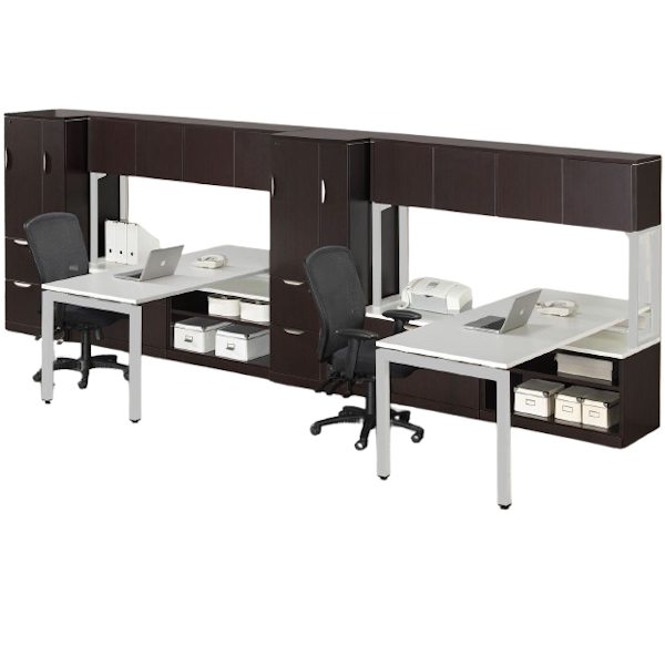 2-Person Team Desk | File Bench | Wall Hutch:
