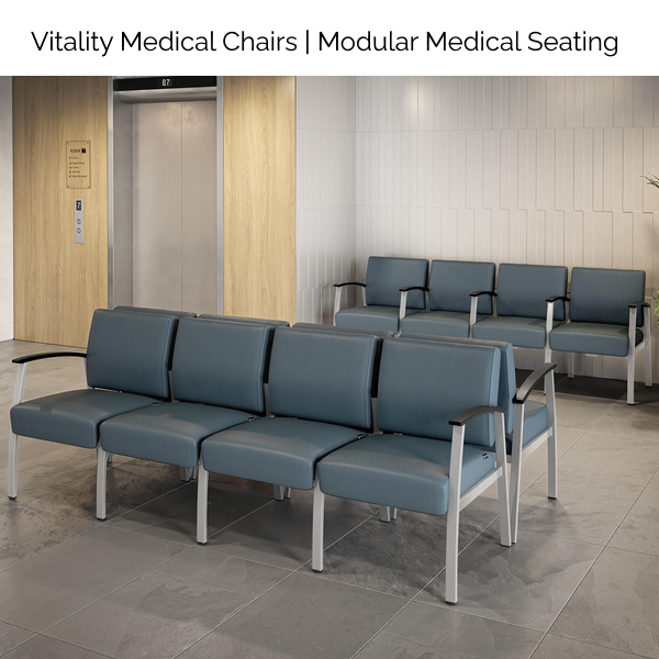 The Vitality Medical 3-Seater Chair is engineered for high-demand healthcare environments. Antimicrobial PU upholstery and removable seats support efficient cleaning protocols, while multiple arm-kit options allow versatile configurations—from standalone chairs to seamless ganged benching. Backed by a heavy duty frame and 900 lbs. weight rating, Vitality performs confidently in clinics, waiting rooms, and medical reception areas.