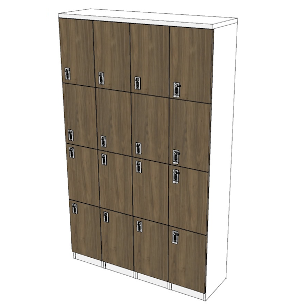 - Unit includes 4 rows of 4 lockers with core locks + keys included