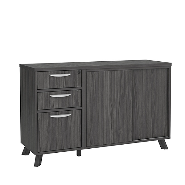 The new Flex Credenza; a stylish, versatile storage solution. Easily reverse the configuration to place drawers or the cabinet on either side. Locking drawers keep valuables secure, while sliding doors offer quick access to larger storage. Small compact footprint at 47.25″W.
