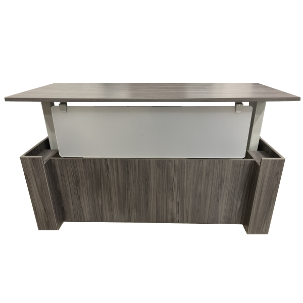 Experience a healthier way to work with this exclusive Performance Laminate Height Adjustable Executive Desk. Featuring a step front design with surface mount frosted acrylic screen, this added feature provides privacy with an enhanced appearance. Electric sit-to-stand casing desk boasts a dual-motor 3-stage, 2-leg height adjustable steel base in a black or silver finish that fits perfectly inside a proprietary designed executive desk case.