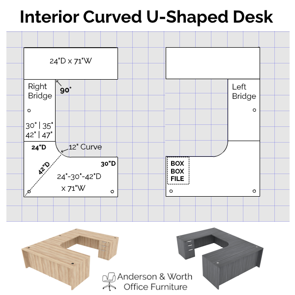 Interior Curve U-Desk | Box/Box/File: