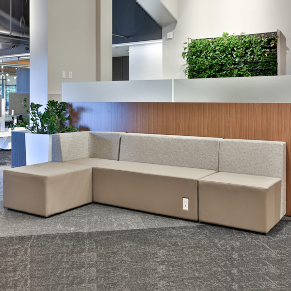 - 2-Tone, modular design with vinyl seats + fabric backs