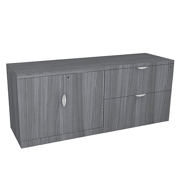 Keep both files and larger items secure in this two-drawer lateral file storage credenza. Combination of two-drawer lateral file and two-door storage cabinet with common top. Available in 12 high-density laminate finishes. Locking credenza includes locks for both lateral file and storage cabinet.