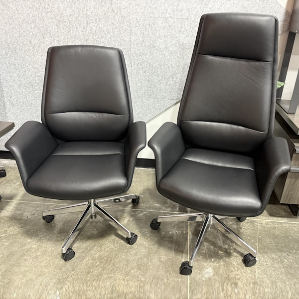 Leather on Demand series fully upholstered high back executive chair available in 4 finish colors. Locking tilter control with heavily padded cushioning throughout. Stocked for added convenience. High performance, American-made conference/executive chair from Buzz Seating.