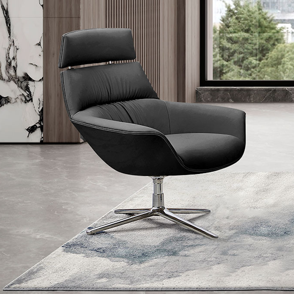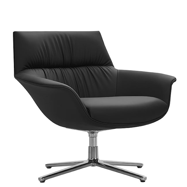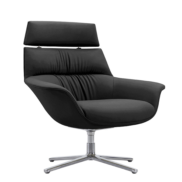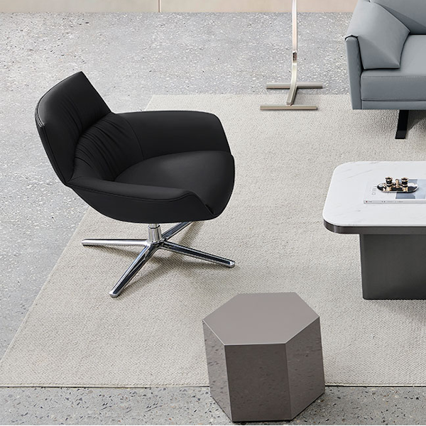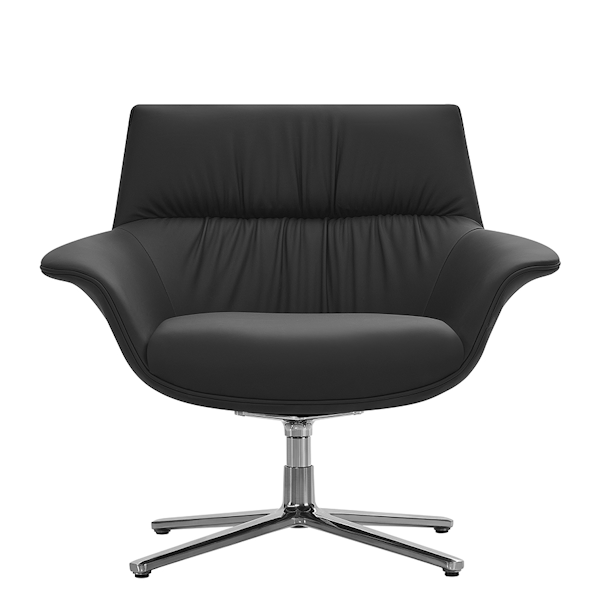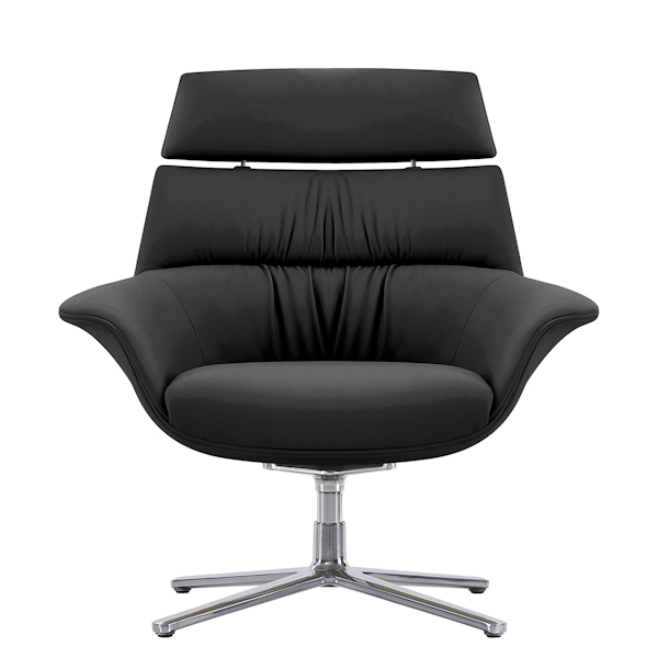 Leather accent chair from Buzz Seating. Finished in a Black top-grain Aniline-dyed leather, this reception chair provides privacy and comfort.