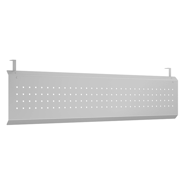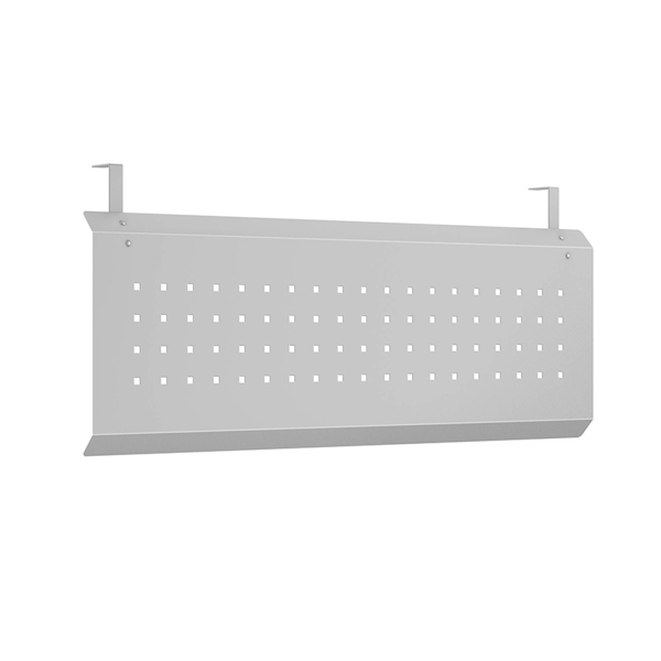 Designed for placement underneath open leg desks. Available in three sizes and two finishes. With three sizes of modesty panels, this easy-to-install steel modesty panel covers desks from 48″-72″W. Available in a black or silver finish, easily install underneath worksurface for an enhanced look with added privacy. Steel modesty panel offers a modern perforated design that will ensure it looks great once it is in place.
