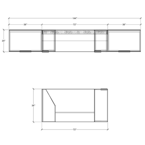 - Floating Shelf with back portion: 72″W x 12″D x 16″H