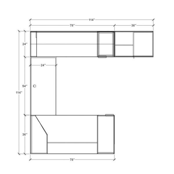 - U-Desk Footprint: 78″W x 114″D x 29″H