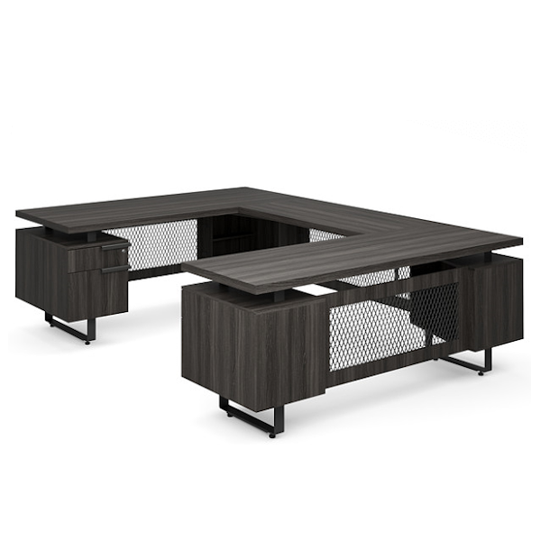 Palisades U-Desk is for those who want to mix industrial accents with an architectural style. It’s for those who demand modernity, luxury, and durability, all while remaining on a reasonable budget. This industrial style U-shaped desk has three steel wire modesty panels on each side.