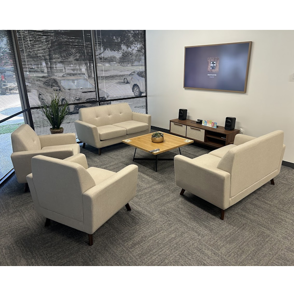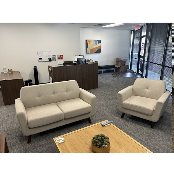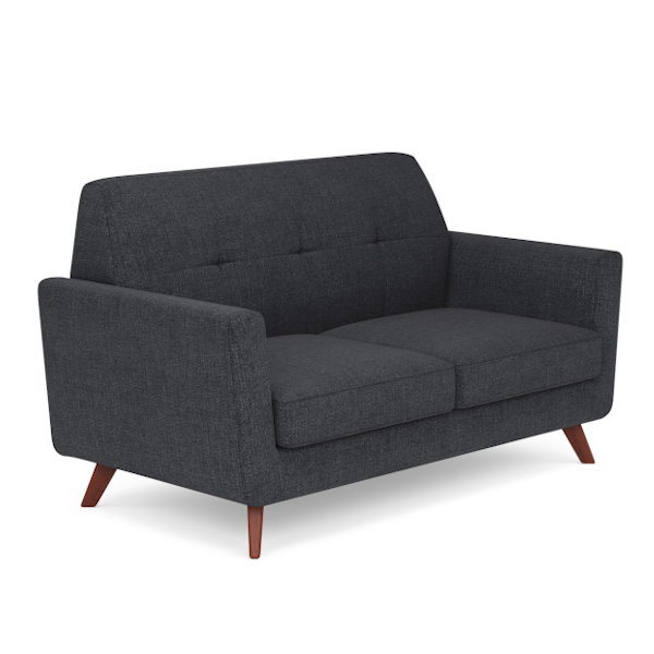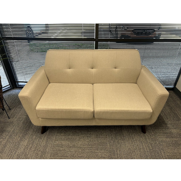 Sophisticate your lounge area with the Retro Loveseat with tapered wood legs. With the chair’s Gray Linen or Latte fabric upholstery and dark cherry wood legs, your space will look warm, sleek and stylish. This lounge chair features a clean tufted back that brings a modern twist to any area.