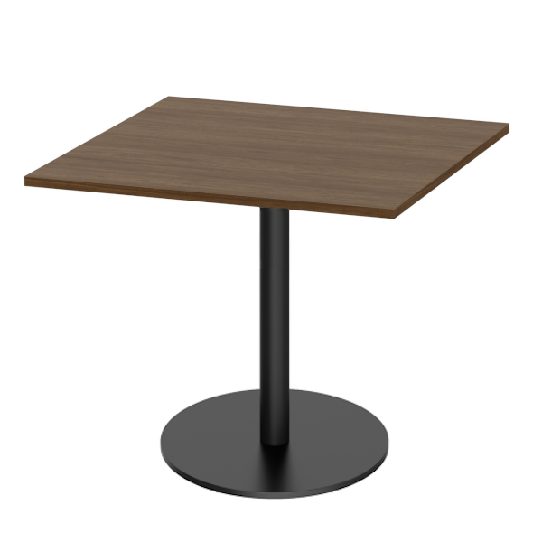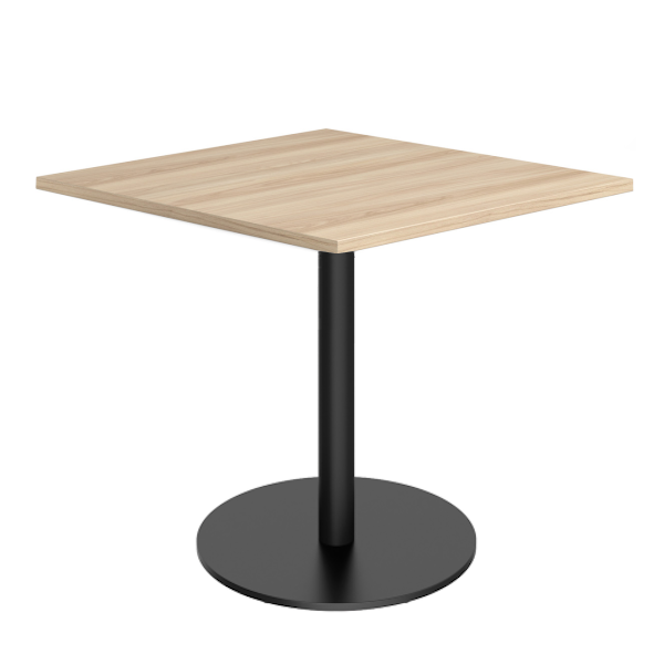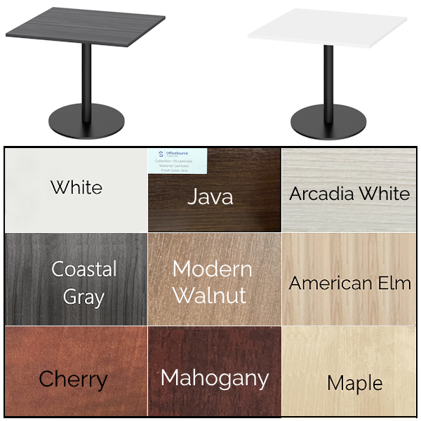 Choose from three surface sizes to contrast round disc base finished in Matte Black. Surfaces are available in 9 durable laminate finishes. Round disc base includes adjustable leveling glides for added stability on common uneven flooring. Ideal for breakrooms, conference areas, and larger private offices.