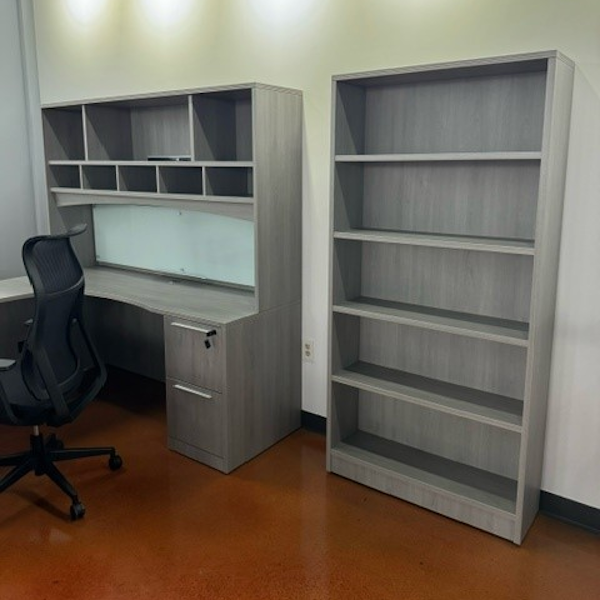 Available in Aged Oak and Dove Oak, this stylish 5-shelf bookcase is available in two finish colors. Part of the Ryker collection from NDI Furniture, this in-stock desk series provides a warm residential feel extending from private offices to reception and conference areas.