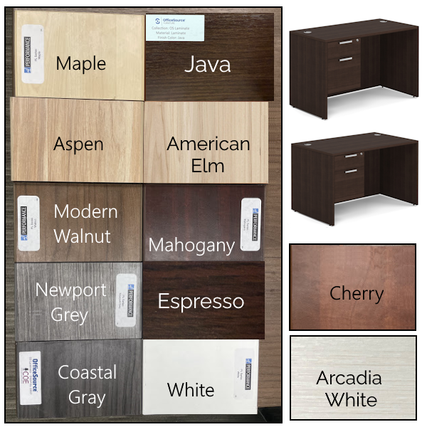 Compact single small pedestal desk with choice of hanging 2-drawer box/file or full 3-drawer box/box/file pedestal. Pedestal attaches left or right to desk shell. Performance Laminate is a trusted brand with hundreds of matching desks, file cabinets, tables and more in a robust 11 finish colors.