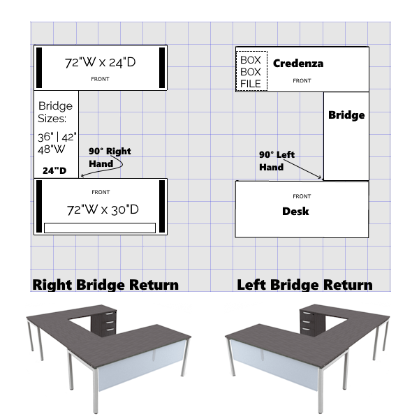 - Reversible Bridge (3): 36″W | 42″W | 48″W x 24″D