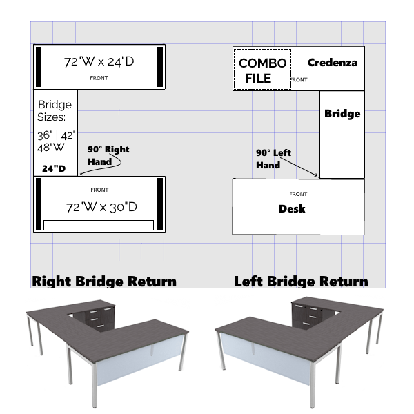 - Reversible Bridge (3): 36″W | 42″W | 48″W x 24″D