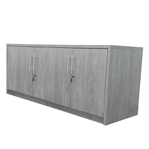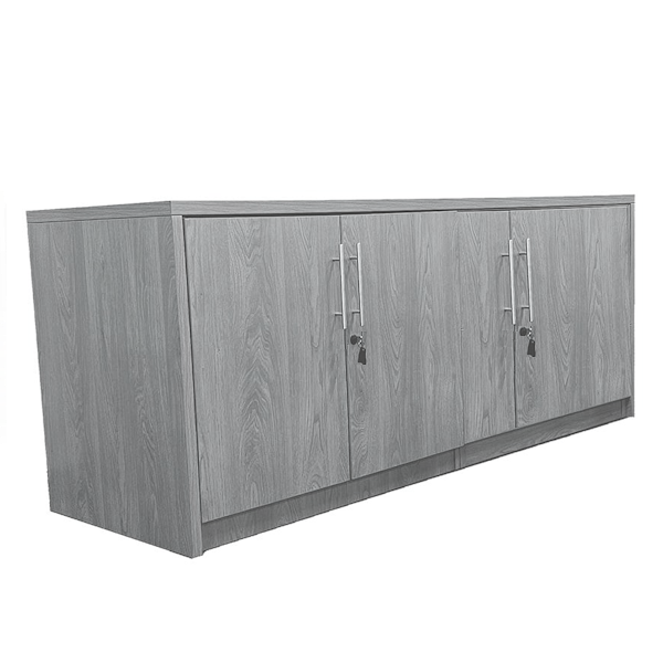 Store office supplies, paperwork, and so much more with this 4-door storage credenza. Lockable doors keep items safe and tucked away. Premium Gray Oak finish keeps any office looking sharp and stylish. This credenza features dual locks with 4 total shelves of which two are adjustable.
