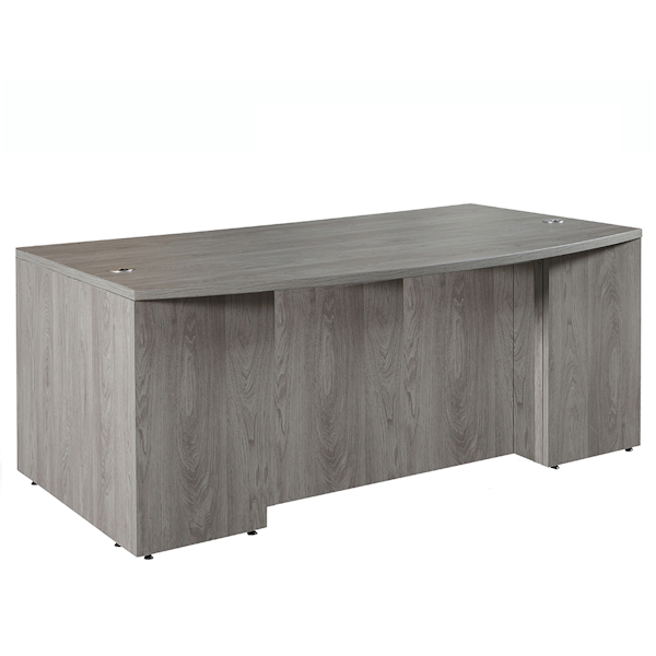 Discover the latest trend imported into Dallas for available stock. Ultra Premium Step Front/ Bow Front Executive Desk comes with two full storage pedestals consisting of locking 3-drawer box/box/file & 2-drawer file/file pedestals. Finished in a proprietary Grey Oak finish, Ultra Premium takes on a whole new element of design with its recessed front design.