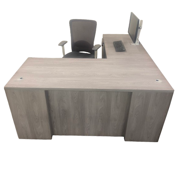 Available here in 6 footprints using two return sizes. Main desk available in two depths available in 30″/35″D. Finished in a proprietary Grey Oak finish, Ultra Premium takes on a whole new element of design with its recessed front design.