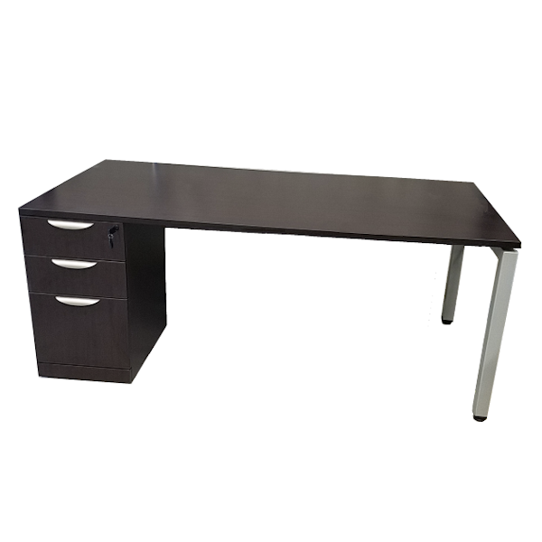 Great value engineer option modular desk from Performance Laminate. The PLT Steel U-Leg Pedestal Desk is available in 3 sizes. Includes 22″D locking 3-drawer box/box/file pedestal and steel 24″D U-leg base in choice of Matte Black or Silver leg finish.