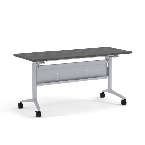 Mobile Y-leg training table with nesting flip-top surface in a 72″ x 24″ size. Front steel modesty panel in matching black or silver steel frame. Choose from 11 available surface finishes to pair with steel base. Steel Y-leg bases include locking casters for the benefit of mobility.