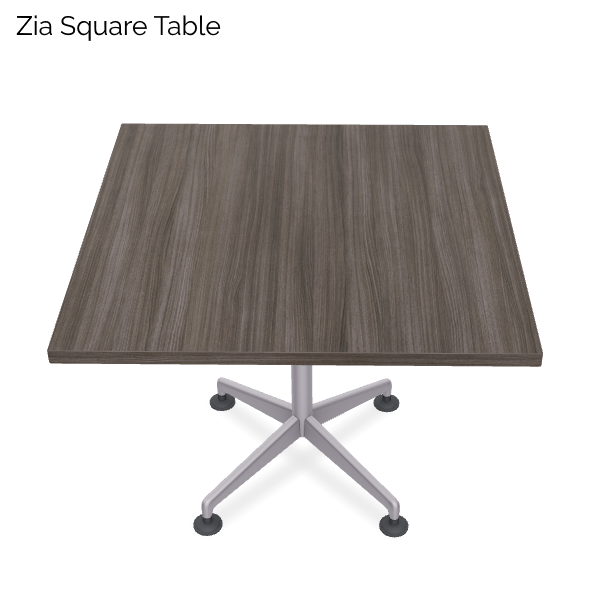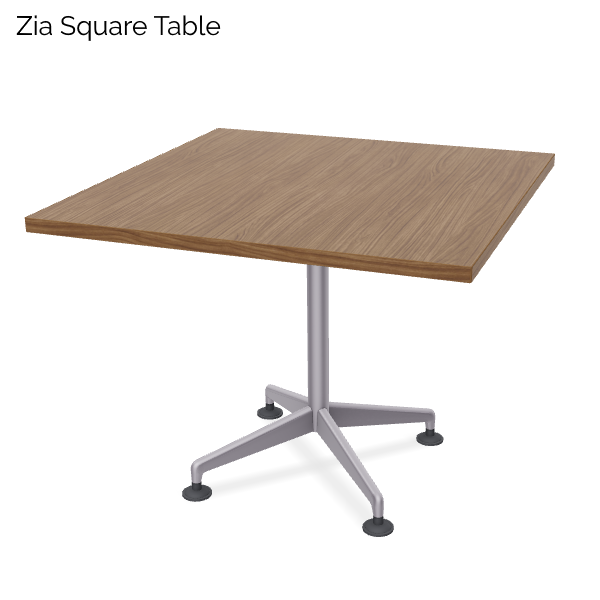 ZIA Square Hospitality Table is available here in 4 quick-ship top finishes to go with a metallic silver base. Zia’s hospitality tables enhance collaboration and productivity with its’ mid-20th-century aesthetic by adding a sense of welcoming comfort to the modern office-scape.